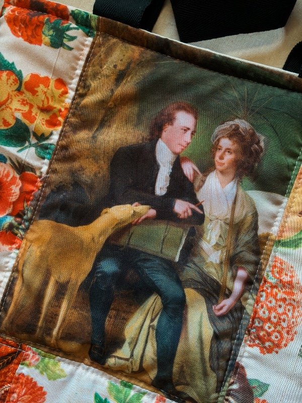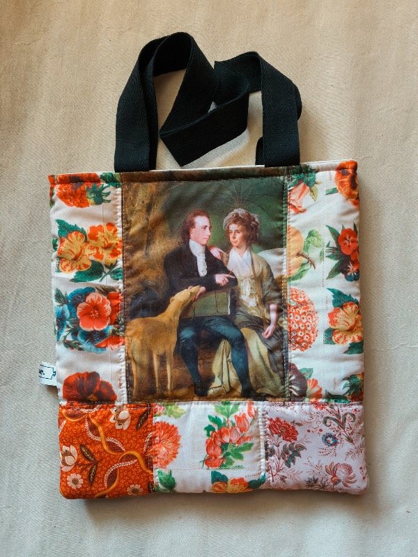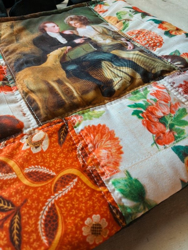 Bolsos acolchados realizados artesanalmente con la técnica de patchwork, combinando imágenes y telas, dorso matelaseado.