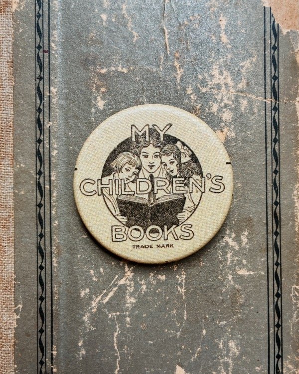 prendedor Metálico de 4 cm , cubierto con laminado mate textura de papel. Proyecto con scans originales de libros