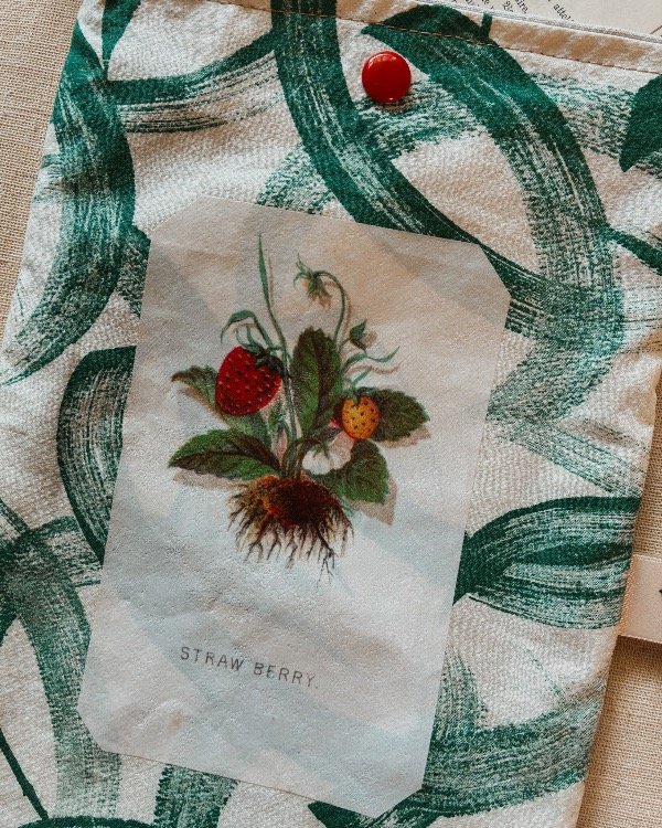 • Lienzo con estampas vintage, con cierre clip plástico.
