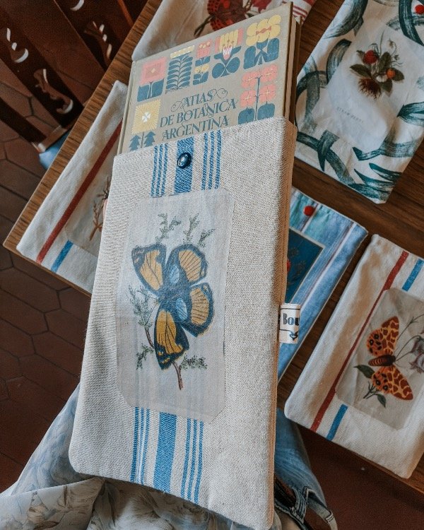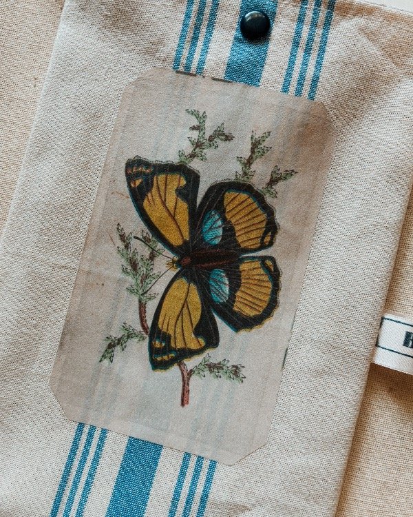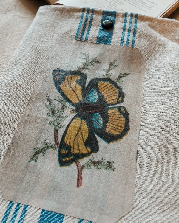 • Lienzo con estampas vintage, con cierre clip plástico.