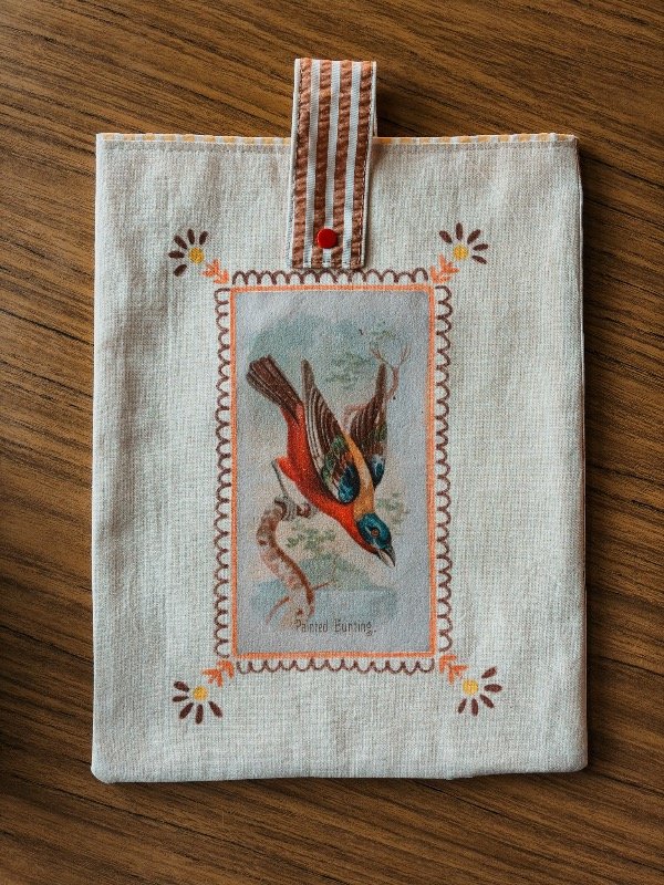 • Tela lienzo, con estampa y detalles pintados a mano, con cierre clip plástico.